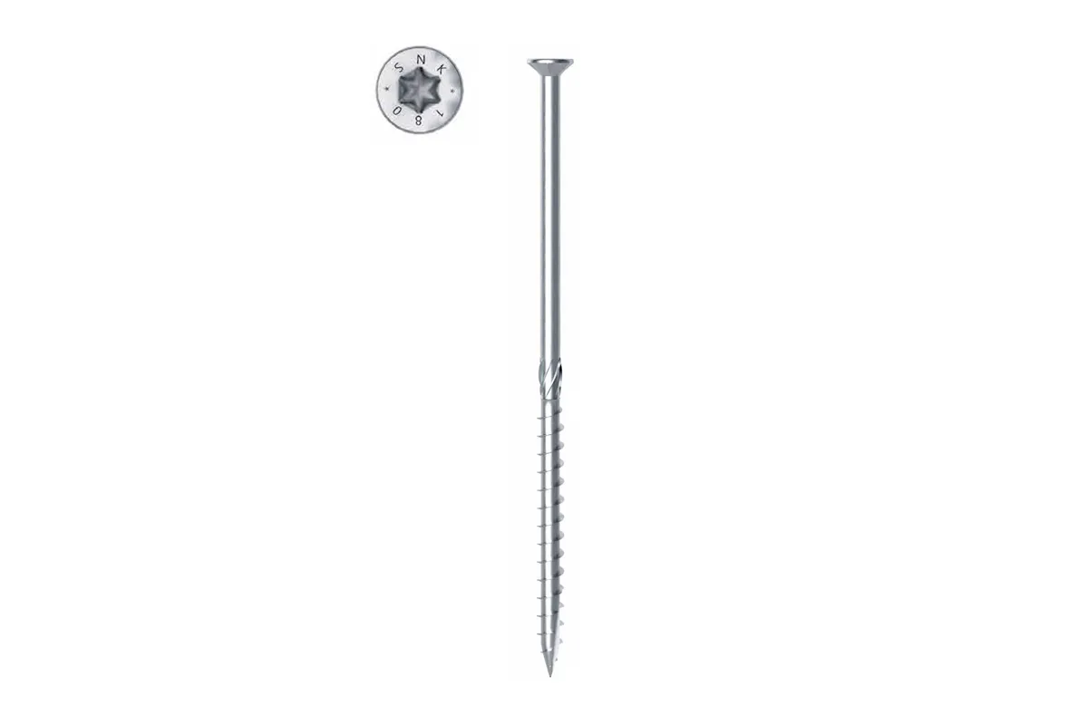 • Tornillo universal homologado para usarse en diferentes estructuras, desde pequeñas construc- ciones hasta edificios de madera